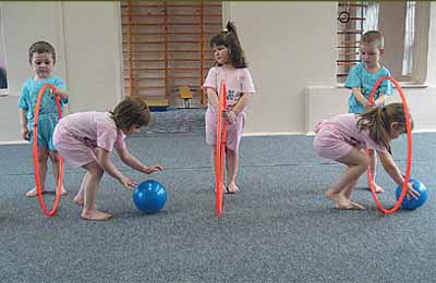 Была очень удивлена, насколько нравится детям, особенно девочкам, запрыгивать с разбегу в обруч. Маленький обруч диаметром 60см, а игр с ним на полчаса. И тоже бывает очередь из детей разного возраста. Игра называется "тигрята в цирке". Я держу обруч то горизонтально, то вертикально, а дети запрыгивают с разбегу по очереди, либо пролезают, стараясь не задеть обруч.