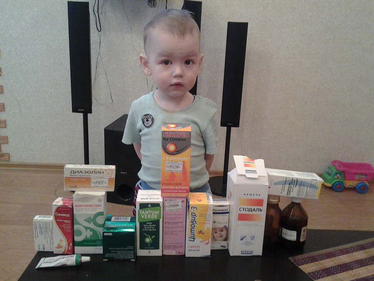 Мы в сад ещё ни разу не ходили. И все равно почему-то в этом году с сентября болеет дочка. То лучше, то хуже. Но в целом два месяца уже киснет. Тоже лекарств столько же будет, если выставить на стол...