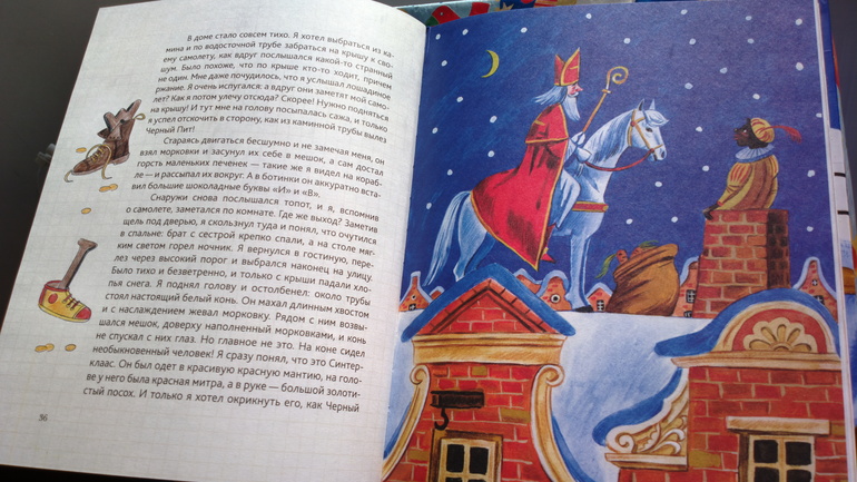 Синтерклаас любит скакать на коне вместе со своим помощником Черным Питом по крышам и разносить детям сладости-шоколадные буквы.