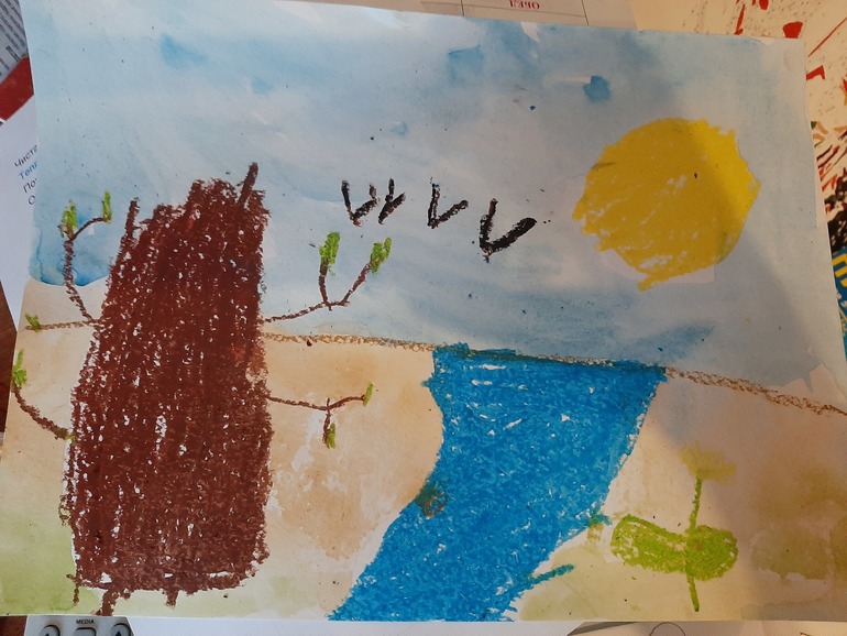 3. Описание картин. Рассматриваем картину, Яр описывает сначала её. Потом мы "оказываемся в картине" и пытаемся почувствовать запахи, испытать тактильные ощущения, придумать что мы бы там делали. Сочиняем небольшой рассказ по сюжету картины.