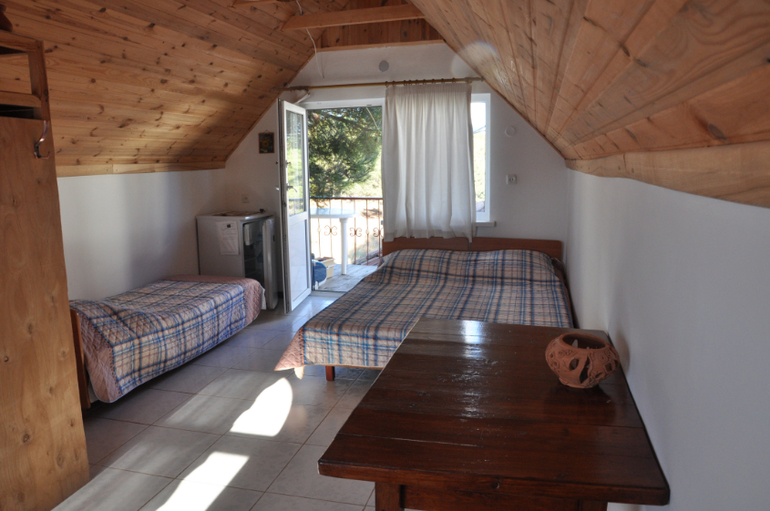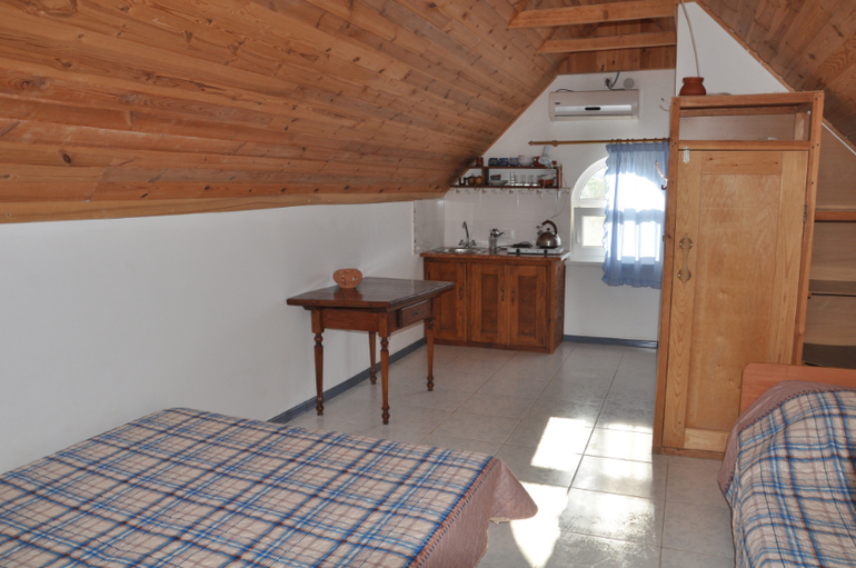 В гостевом доме четыре номера, один из которых двухкомнатный. Каждый номер оборудован индивидуальным санузлом с душем. Холодная и горячая вода постоянно и без перебоев. В каждом номере есть кухонный блок со всем необходимым, в каждом номере имеется холодильник и кондиционер. Доступ к Интернет, wi-fi. Даем пользоваться (бесплатно) велосипедами, есть велосипед с детским велокреслом. В качестве дополнительной услуги проводятся мастер-классы для детей и взрослых по лепке из глины и живописи маслом с выходом на пленэры.