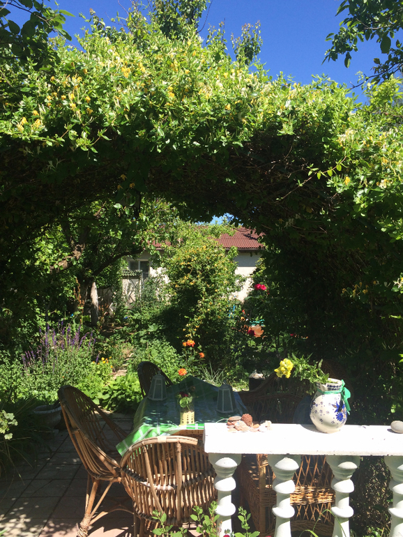 Особенный кайф мы ловили на веранде, увитой благоухающей жимолостью. Обедали, пили чай, ели тазами черешню.
