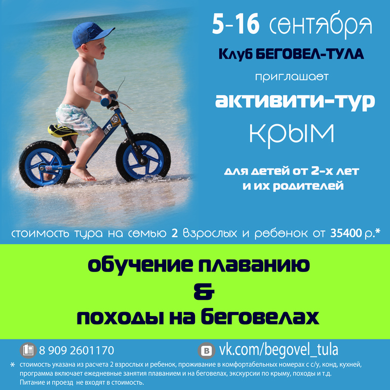 Доска объявленийПриглашаем детей от 2-х лет и их родителей в активный семейный тур на море.