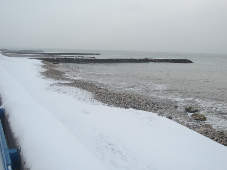 Необычно, я бы сказала)) я первый раз снег вижу на море...первую зиму тут живу