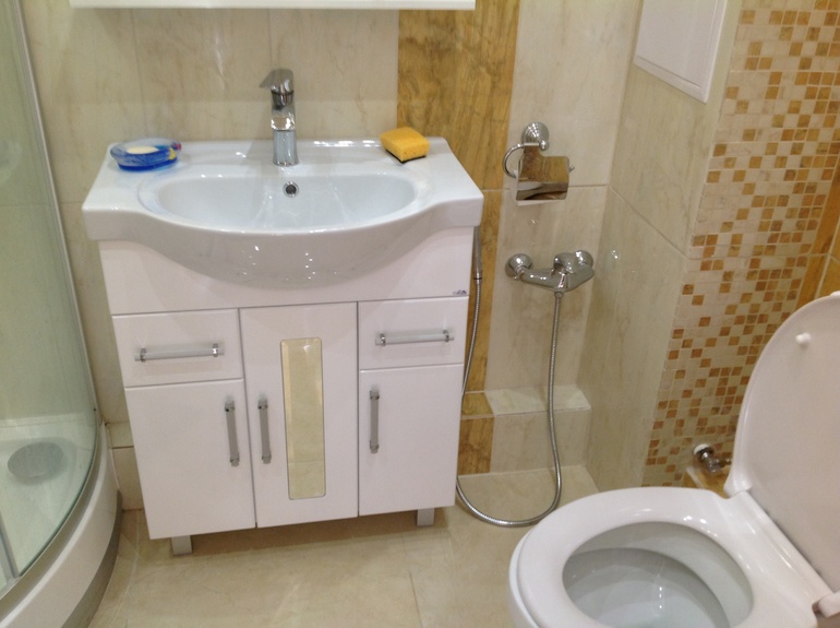 Дизайнерский ремонт, на кухне вся техника, начиная от кофемашины и кончая мультиваркой. В санузле - немецкая сантехника, "тропический душ", джакузи, стиральная машина, фен, весы. Предоставляются махровые халаты, гель для душа, шампунь, средства для мытья посуды и для стирки.