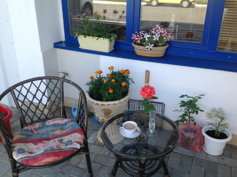 У нас отдельный вход с улицы, при входе можно поставить столик и плетеные кресла под пальмочку. Большой балкон-терраса прямо на море, шезлонги, стеклянный стол, выдвижные навесы-"маркизы" и т.д. Завтракали мы, как на корабле! Продукты натуральные и вкусные.