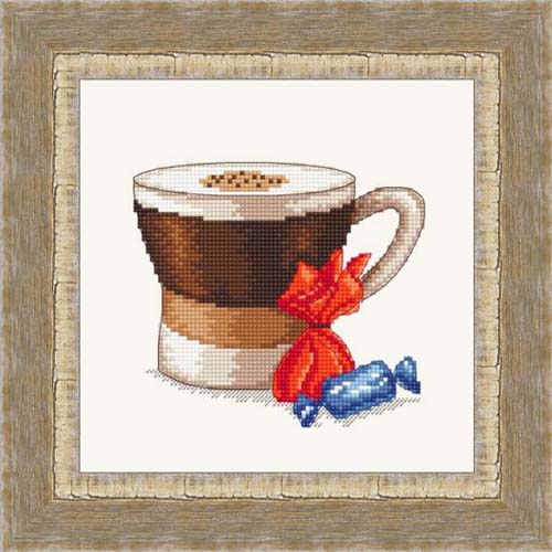 Состав набора: канва Aida 14 белая, мулине Finca 10 цв.,декоративная пуговица, ленточка, косая бейка.