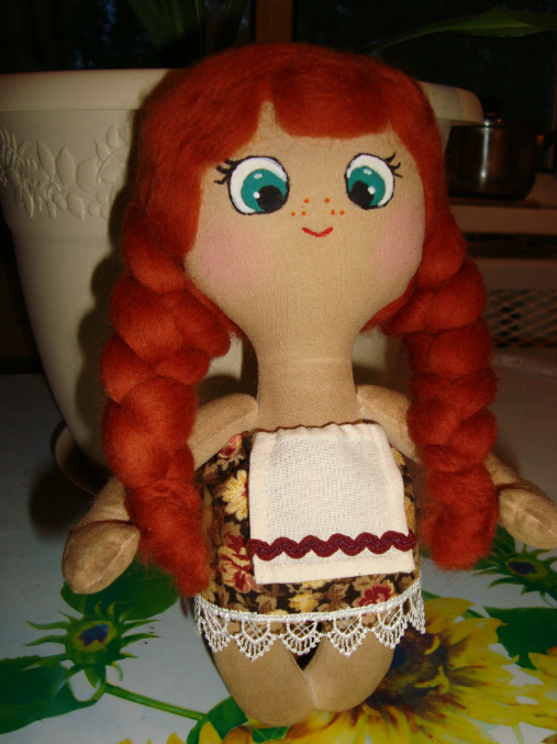 ну, во-первых, я не стала прикреплять волосы из комплекта, купила другие. А, во-вторых, я их не пришивала, а приваляла. В инете много мастер-классов есть