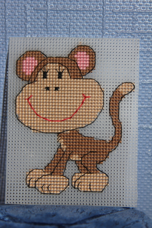 Вышила на пластиковой канве мартышку, позже будет ёлочная игрушка