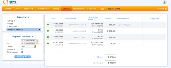 Плюс еще 3000 на карточку Сбербанка от Алены.Коротко:29.11.2011 30030.11.2011 300001.12.2011 60002.12.2011 50004.12.2011 150006.12.2011 150007.12.2011 2010.12.2011 600итого: 802011.12.2011 195018.12.2011 300итого: 10270