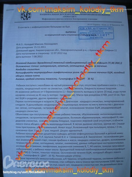 Малыш из Украины, в которой НЕТ квот на лечение, практически все препараты и даже расходники, такие как шприцы, системы, перчатки, вату и т.п. родители вынуждены покупать сами. На данный момент Максимка находится в детской областной больнице г. Кировограда.