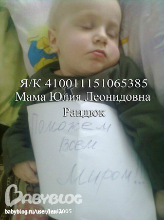 ДРУЗЬЯ, В НАШИХ СИЛАХ ПОМОЧЬ МАЛЕНЬКОМУ БОРЦУ, ЭТОМУ "СТОЙКОМУ ОЛОВЯННОМУ СОЛДАТИКУ" ОБРЕСТИ ЗДОРОВОЕ БУДУЩЕЕ!!! А МАМЕ ЗАНОВО УСЛЫШАТЬ ГОЛОС, ПЕРВЫЕ СЛОВА СВОЕГО СЫНОЧКА, ПОЙМАТЬ НА СЕБЕ ЕГО ОСМЫСЛЕННЫЙ ВЗГЛЯД, А ТАМ И ПЕРВЫЕ ШАГИ НЕ ЗА ГОРАМИ!!!!! ПОМОЖЕМ АРТЁМУШКЕ ВСЕ ВМЕСТЕ?!!!!!!!!!!!