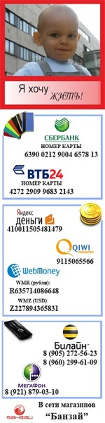Как уже говорилось выше, болезнь Саши лечится и в России (то есть формально нельзя сказать, что лечение за границей необходимо), только здесь шансов на успех - 5 %, а там - 80.