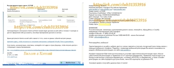 БИЛЕТЫ В КИТАЙ НА 19 ФЕВРАЛЯ 2013г.