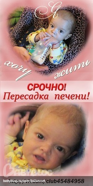 Срочно нужна пересадка печени!!!!! 8 месяцев малышу!!!