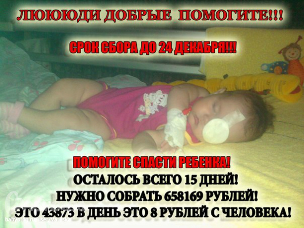 Да ужас просто, до нее собирали малышке Амелии, в 3 месяца нашли рак глаз, и вот после кучи химеотерапии и многих поездок в разные страны, спасли один глазик и они сейчас заканивают лечение.