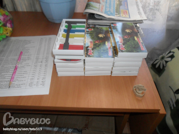 сейчас все стоит вот в этих огромных коробках, остался последний рывок: все разобрать на 2 ДД и добраться до почты, которая принимает тяжелые посылки, Как оказалось канцтовары совсем не легкие.
