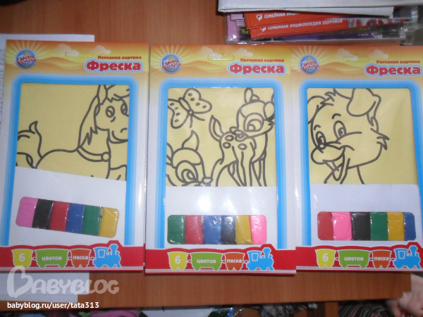 Фреска "Колобок" из цветного песка: стек, рамка на подставке, 10 цветов х 5 гр