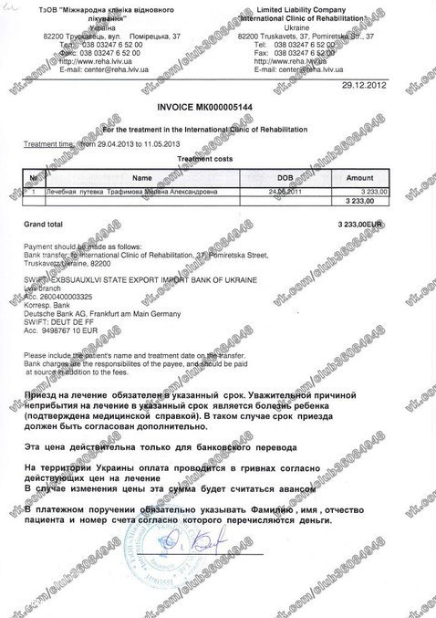 РоссияДРУЗЬЯ! Мы вынуждены вновь обратиться к Вам за помощью! Выставлен счет на лечение в Трускавце с 29 апреля по 11 мая 2013 года. сумма сбора 165 186,00 рублей.Я уже обратилась во многие и фонды и организации, не которые отказала, не которые еще не ответили. Только благодаря Вам завершены 2 курса реабилитации в Чехии по методике Войто и Милана имеет успехи. Спасибо Вам за это!Мы очень надеемся на вашу поддержку! Бесплатно с эпилепсией не берут не в один санаторий! Элементарное ЛФК и массаж в городе предоставляется только на частной основе!