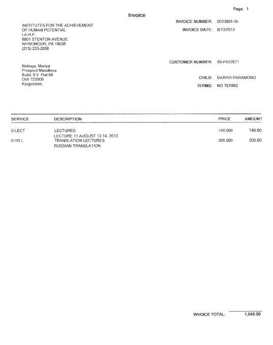 1) в Долларах: USD 1280036004216245 Счета открыты на имя Небога Марии Андреевны в KICB-Банке, SWIFT: KICBKG22, БИК 128003, адрес - г.Ош, ул.Раззакова 48 А