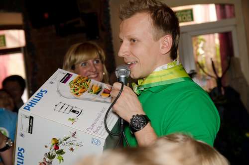 Телезвезды Антон Комолов и Саша Пряников делали все возможное и невозможное, чтобы развлечь гостей. Они продемонстрировали потрясающие способности владеть аудиторией в весьма стесненных условиях! Благодаря им лотереи и аукционы стали зажигательными и веселыми и долго удерживали внимание зрителей, несмотря на тесноту.