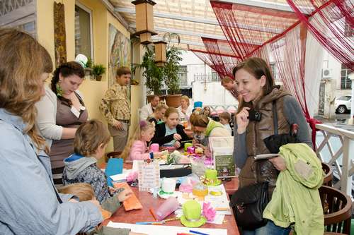 Мастер-класс по созданию шляпок придавал мероприятию особую пикантность. Ярко-розовые, голубые и зеленые, серебристые и золотистые шляпки украшали макушки самых юных гостей. Опытный шляпник Ирина Суровцева прекрасно знала, как заинтересовать детей: вокруг ее стола стояли толпы желающих.