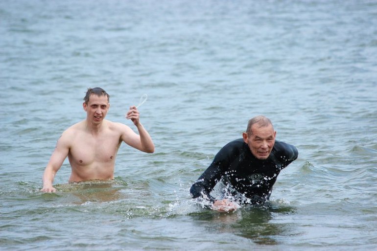 Второе и тоже сильное впечатление - это участники старше 60 лет - у нас было 10 дедушек и 3 бабушки - причем самый старший дедушка 1940 года рождения - девочки, 74 года человеку - а ОН!!!! приплыл он причем не последний. Как и бабушки около 70 лет - ее внуки стояли болели за нее - а она плыла.... (Чувствуешь на их фоне себя - просто лентяем и ватой *(((( )
