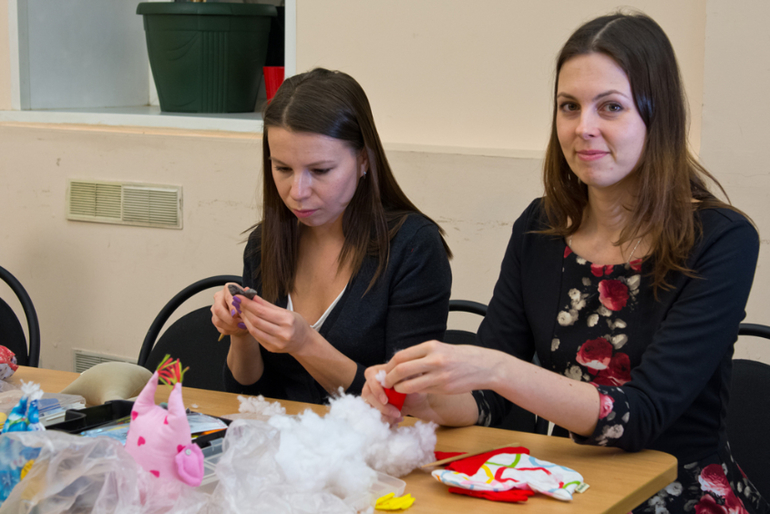 Конечно же на развитие этих проектов нужны средства. Они собираются по-разному. Большая подмога для фонда - хендмейд-игрушки, сшитые на швейных мастерских. Доброволец Наталья Березина, которая регулярно ведет эти мастерские, говорит, что на них совершенно особая энергетика и атмосфера. Душевная, радостная, игрушки шьются с полной отдачей и искренней любовью. О своих игрушках их создательницы заботятся: вяжут шапочки и шарфики, свитера. А для одного жирафа даже сшили сапожки.