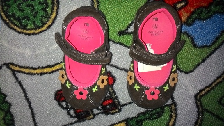 Новые туфельки из искуственного материала и внутри и снаружи ,на бирке стоит UK 20 1/2,намеряла 12см.Забрать можно в Павшинской пойме.