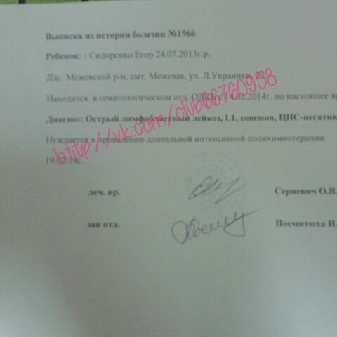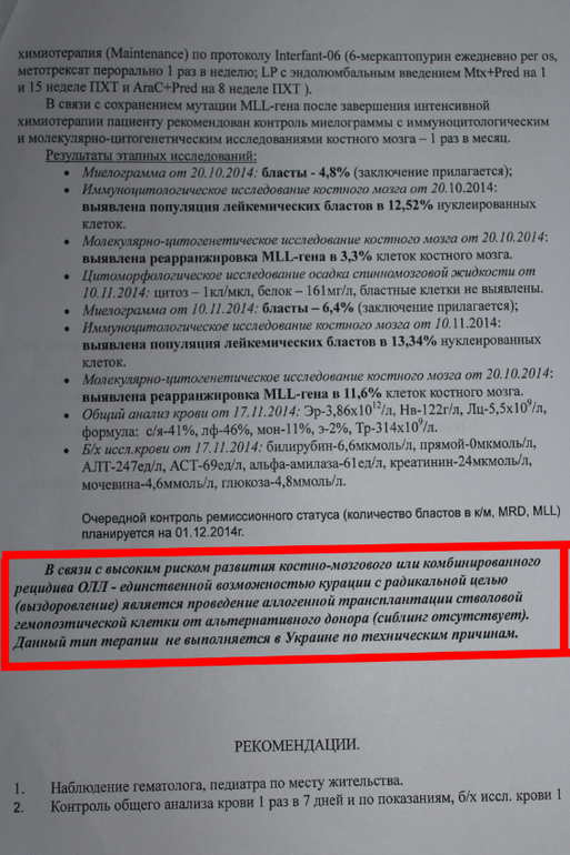 Диагноз: ОСТРЫЙ ЛИМФОБЛАСТНЫЙ ЛЕЙКОЗ, РЕЦИДИВ!!!
