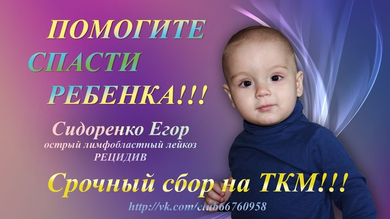Восемь месяцев маленький Егорка боролся за жизнь. Восемь месяцев слез, боли, испытаний. И в конце этих восьми месяцев наступает небольшая радость, болезнь отступила. Наконец-то малыша с мамой выписали с больницы. Наконец-то они увидели родных и близких, которые были так далеко. Казалось что жизнь набывает нового смысла. Немного позабылись больничные будни, бесконечные капельницы и анализы. Но к сожалению это продолжалось недолго. Прошло всего два месяца и на Егорку свалились новые испытания. При очередном анализе костного мозга оказалось что болезнь возвратилась. И прозвучал диагноз - РАННИЙ РЕЦИДИВ ОСТРОГО ЛИМФОБЛАСТНОГО ЛЕЙКОЗА!!!