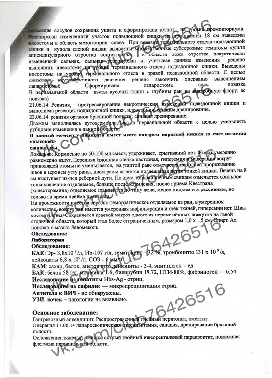 Диагноз: Гангренозный аппендицит, гнойный перитонит, «синдром короткого кишечника».