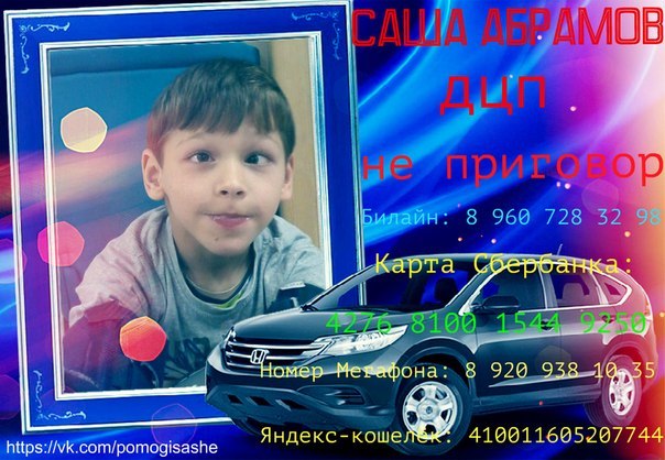 Смысл денег не в том, что на них можно купить, а в том, что можно ими изменить! 100-200 руб. для кого- то это несущественные суммы. А счастливое детство ребенка зависит от этих сумм, с миру по нитке! Давайте поможем Санечке полностью выздороветь! Не бойтесь переводить маленькие суммы - для нас каждая копеечка как миллион! Спасибо Всем большое!