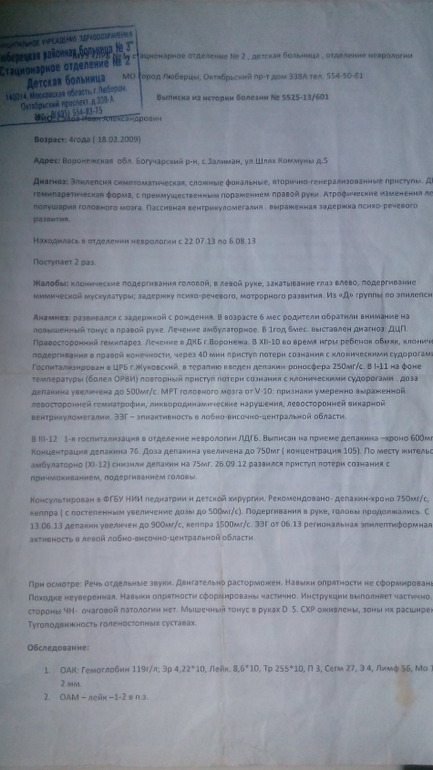 Спасибо откликнувшимся,но к сожалению их оочень мало ,на данный момент собрано 2500 тыс. рублей, т.к. времени ждать жилья уже нет, с пенсии сеята комната в комуналке и куплен препарат Кеппра! Девченочки,давайте поможем,через неделю заканчивается суксилеп ,а это 8000 руб!! В России этого препарата нет,везут из Германии поэтому такая цена... Если есть возможность в приобретении этого лекарства,помогите пожалуйста!!! Ванечка нуждается в нем каждый месяц... Прошу репоста.