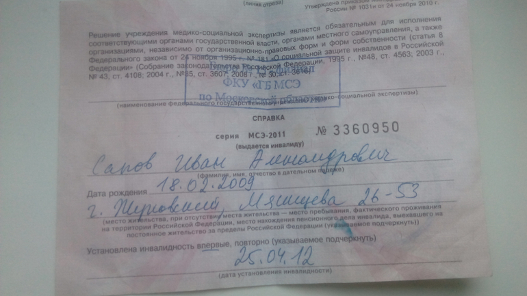 Вот документы на сына :