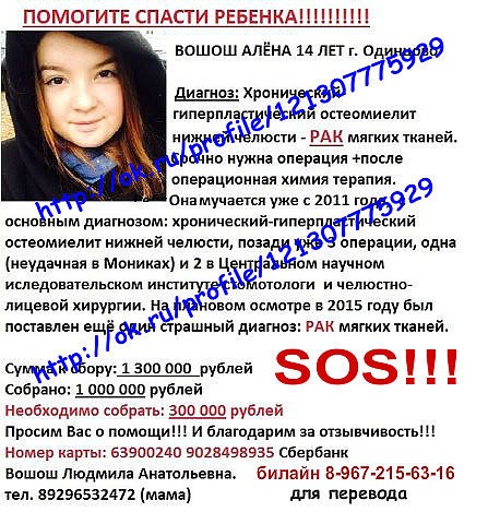 У ребенка 14 лет Вошош Алёна обнаружили РАК!