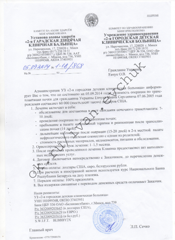 Ваня Евчук, 10 лет SOS! СРОЧНЫЙ сбор на пересадку почки!