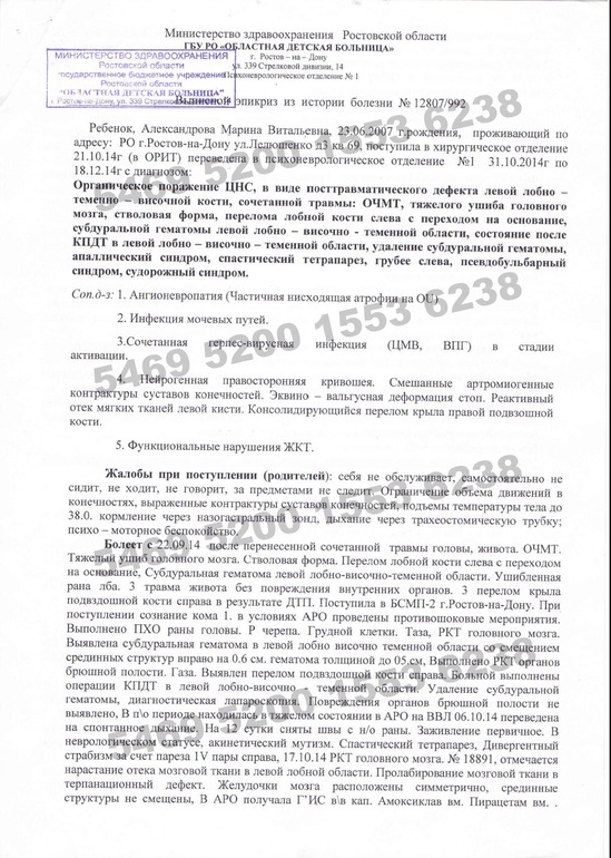 К огромному сожалению, в жизни не все складывается так, как мы хотели бы. 22 сентября 2014 года в Ростове-на-Дону произошла страшная авария, травмы получили Марина, ее брат и папа, но больше всех пострадала сама девочка. Она пережила сложнейшую операцию, полтора месяца пролежала в коме и до сих пор остается в тяжелом состоянии. На сегодняшний день диагноз - апаллический синдром (бодрствующая кома).
