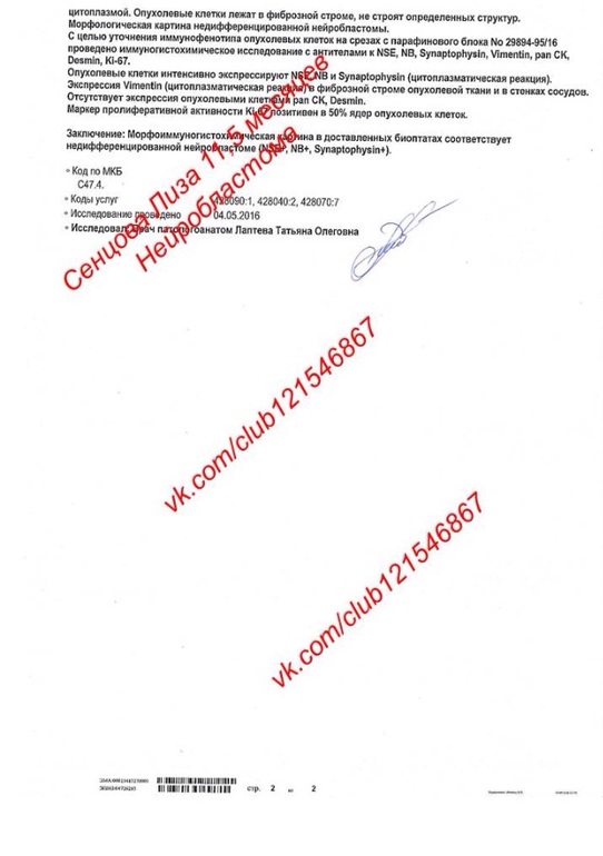 Учитывая нашу ситуацию: сложное месторасположение опухоли и положительную амплификацию гена N-myc (высокая степень риска), наиболее эффективной частью методики лечения в мировой практике является иммунотерапия (терапия антителами), которая побуждает иммунную систему атаковать опухолевые клетки. В результате при нейробластоме с высокой степенью риска снижается риск рецидива, а выживаемость возрастает на 20 %, что в нашем случае увеличивает шансы Лизоньки выжить аж в 2-5 раз!!!