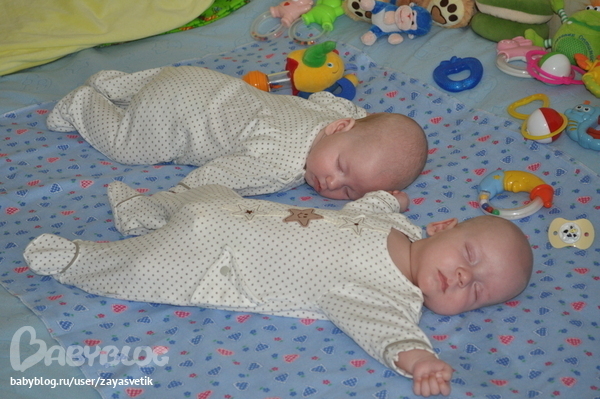 младший сейчас стал радовать с каждым днем, сам научился на животик переворачиваться и делает это постоянно, тянет ручки к игрушкам и улыбается им ( общается с ними), старший ленится переворачиваться но сегодня смотрю уже пробует сам (я ему вчера показывала как это делается). Любят когда мама им поет, они улыбаются и подпевают по своему, агукают, погремушки стали держать, бутылочку поддерживают, любят когда я их держа за руки раскачиваю в разные стороны, они прям ржут от этого спорта.
