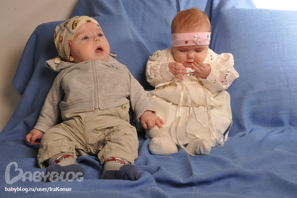 Ой, и мы вчера, ровно в 6 мес., делали фотосессию. Фотограф правда начинающая, испытывала на нас новый объектив. )))) Ну и таких малышей первый раз снимала.