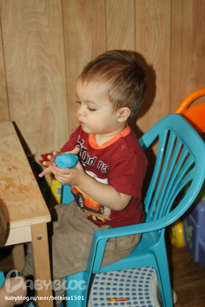 Лепить ему нравится, но он был увлечен водной раскраской)))) хотя наверное, ему больше хотелось открыть стаканчик не проливайку)))))))))))