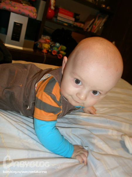 Как уже известно, за прошедший месяц, мы обзавелись зубом (у Сани) и поползли (оба, Саня активнее).