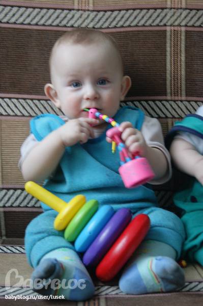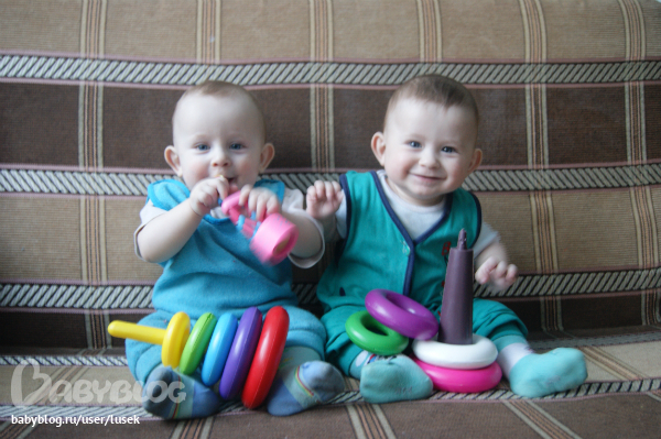 Наши братики Петя и САша. 8,5 мес. Петя- наш электровеник))) Везде ему все нужно- залезет, отберет и посмотрит. Ползает и сидит, встает в кроватке и у опоры. Сашка более спокойный мальчик-одуванчик. Все время улыбается и никуда никогда не торопится)))