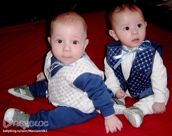 28 марта моим крокозяврам исполнилось ПОЛГОДА! Боже, даже не верится! Вроде бы еще недавно мой мозг взрывался от постоянного крика моих малышей..... а сейчас мои сынишки уже сами сидят, Власик даже ползать пытается, кушают овощи (брокколи обожают!!!), могут играть игрушками минут по 20, а главное это то, что ночами мы больше не орем и спать ложимся в 12 ночи.... Просто сказка! Если бы еще не кушали ночью, то вообще бы наступил праздник!!!