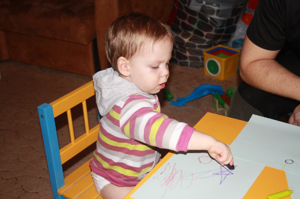 а краски я даю только сидя в стульях для кормления, иначе пипец всему вокруг))