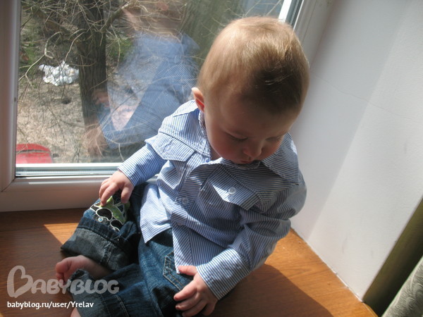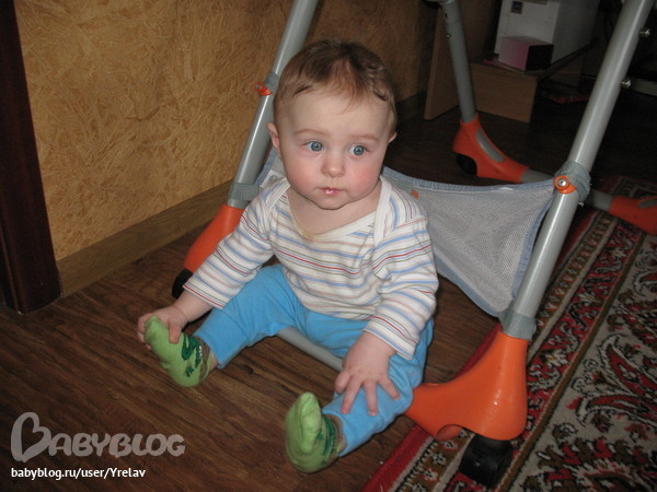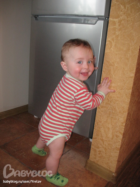 Прошедший месяц прошел очень активно: Кирюшка стал очень быстро передвигаться по квартире, все чаще ловлю его около мусорного ведра, на кухне передвигая табуретки, в спальне под манежем обнимая пачку с памперсами и конечно же в коридоре облизывая зеркало))))