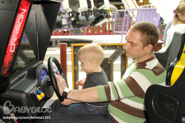 хотя мы покатались на самых простеньких карусельках и как большие порулили на машинках)))