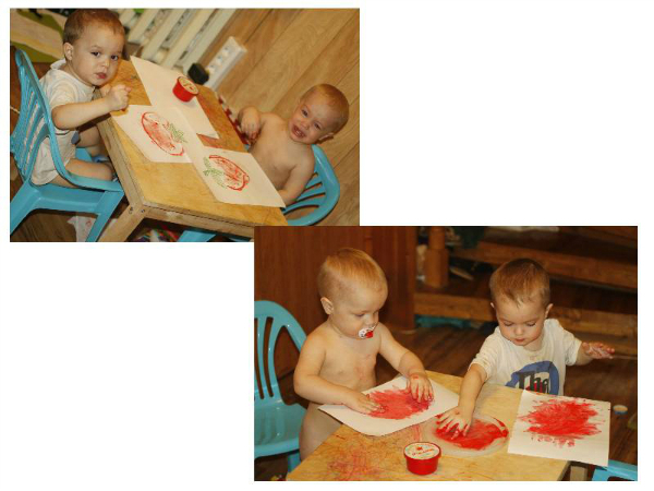 - собирали игрушки по дому в красный и желтый пакет. Мама расставляла везде красные и желтые предметы, а ребята собирали их в соответсвующий пакет.
