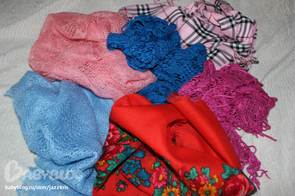 А так как Дед у нас часто бывает в командировках в Оренбурге, пуховых платков у нас великое множество =)))